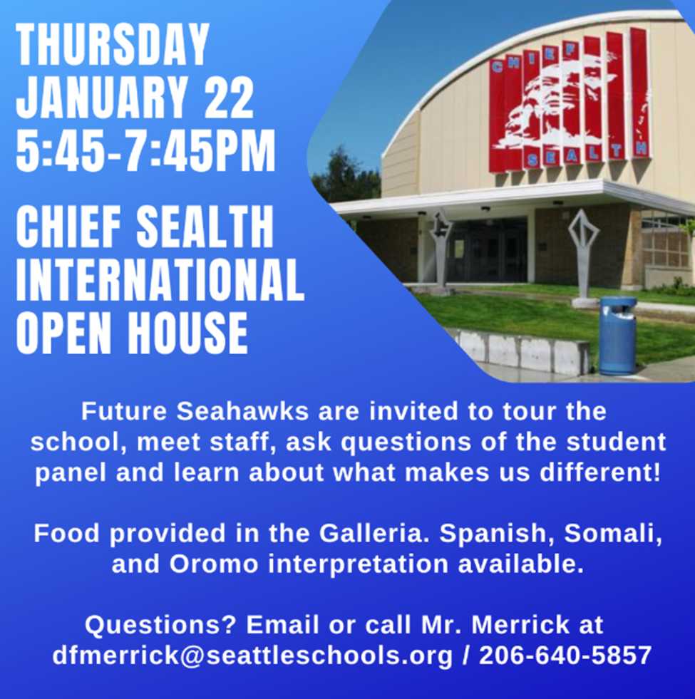 Questions – Email Assistant Principal Dean Merrick at dfmerrick@seattleschools.org or call 206-640-5857